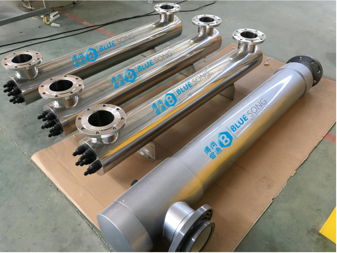水質處理中紫外線殺菌方法與傳統殺菌方法相比具有不需要投加化學藥劑、不產生有毒有害副產物、殺菌效率高、操作簡單、便于運行管理等特點。因此在水處理和水產養殖業中,日益普遍的選擇紫外線殺菌取代化學殺菌(尤其是氯殺菌).紫外線設備是循環水水產養殖系統的重要組成部分,用于品種繁育、養殖和水產品凈化等生產過程中的水體殺菌處理。